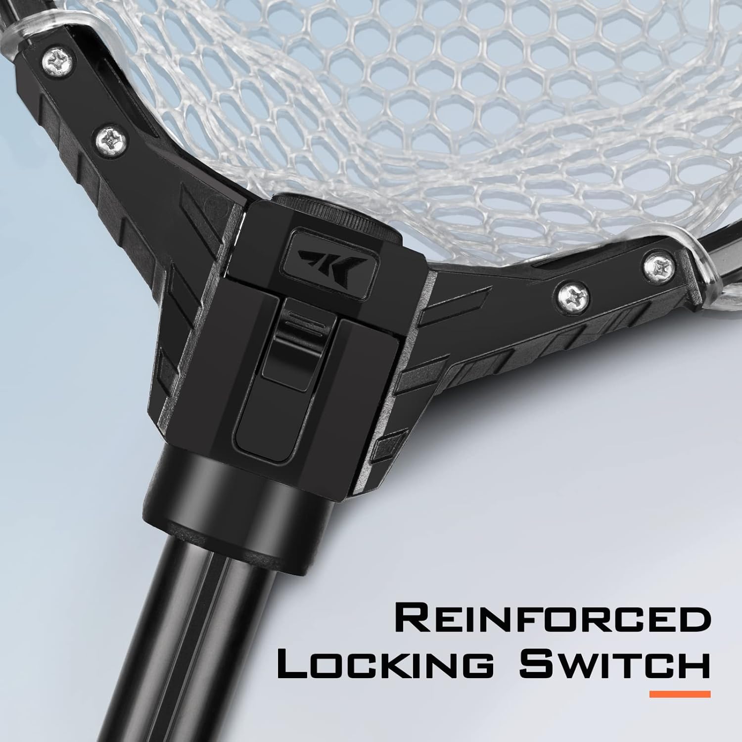 Adopting a u-shaped design, the KastKing landing net features a push-down switch for convenient storage. This switch, reinforced by four tough screws, lets you easily pull down and retract the net frame. And the net could easily fold back to store. This foldable fish landing net provides a convenient way for fishermen to store.