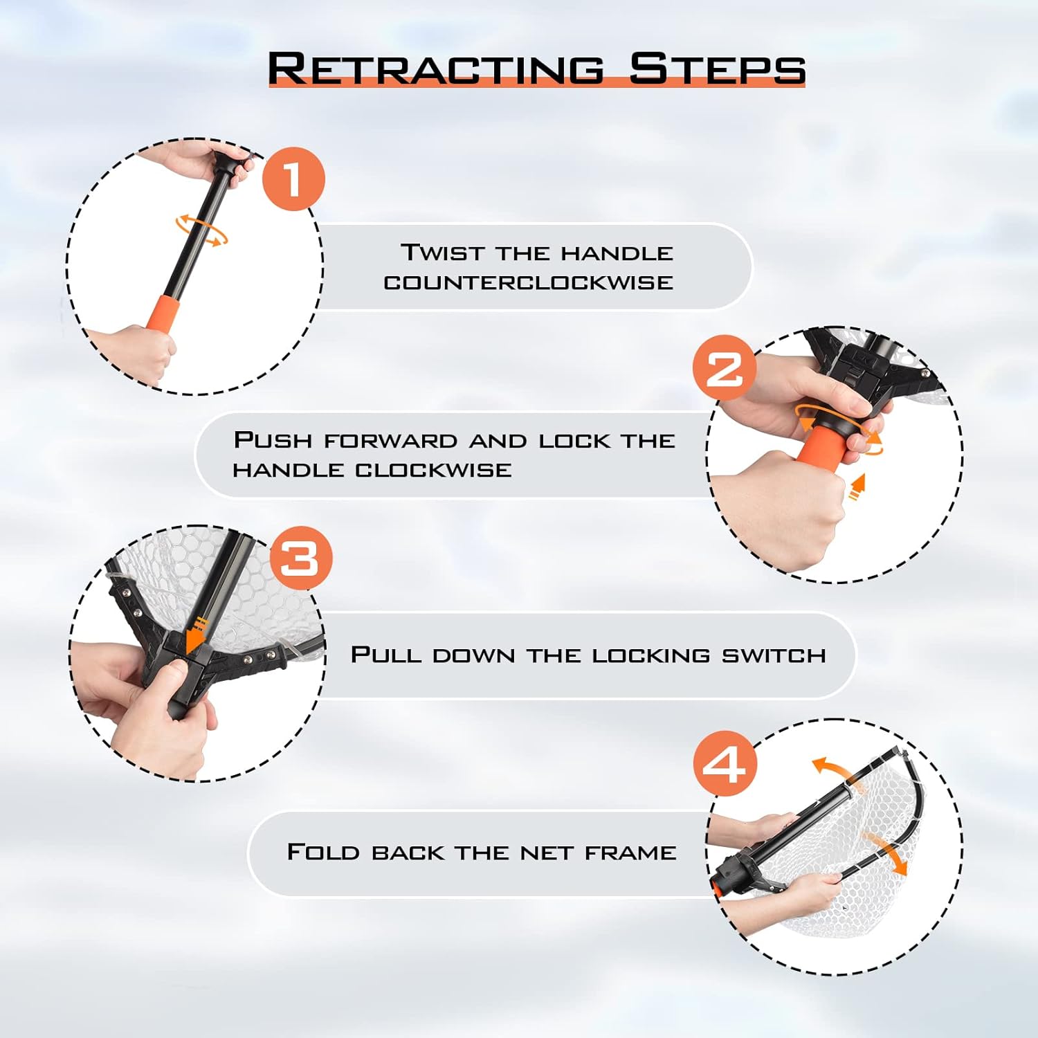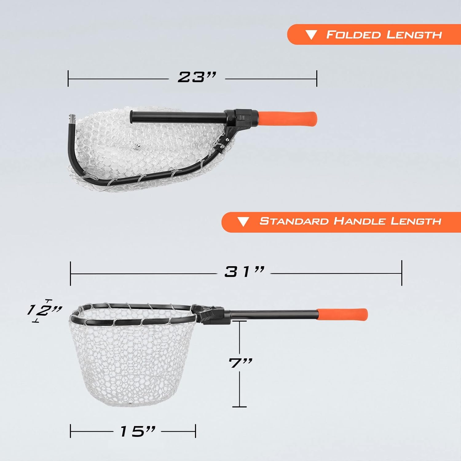 Bright Color EVA Handle:The bright orange EVA foam handle allows you quickly find the landing net in just a few seconds, even in low light conditions. And this comfortable EVA handle provides a firm handgrip and makes the handle much easier to hold without slipping when your hand is wet or in cold weather.
