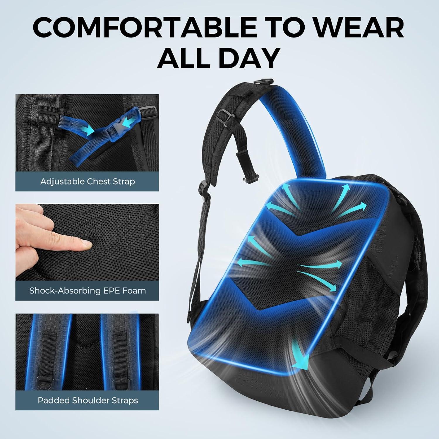 Comfortable to Wear All Day – Built for extended fishing trips, the KastKing KarryAll KastMate Fishing Tackle Backpack delivers superior comfort and support. Shock-absorbing EPE foam cushions your back, while padded shoulder straps help distribute weight evenly and reduce fatigue throughout the day. An adjustable chest strap keeps the pack secure as you move from spot to spot.