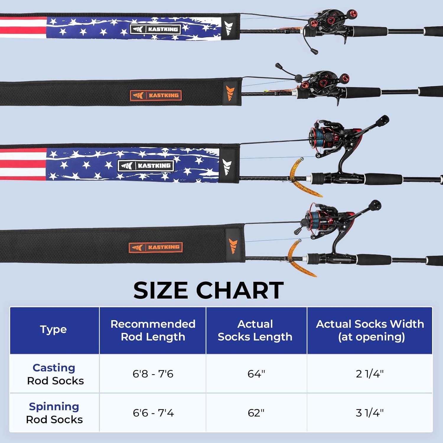 Tailored Fit With Adjustable Lanyard: KastKing MeshGuard Rod Socks come in two purpose-built sizes: one for casting rods (fits 6'8″ to 7'6″) and one for spinning rods (fits 6'6″ to 7'4″), carefully tailored to match the structure and length of different rod types. The custom fit allows for ease of use. An adjustable lanyard secures the sleeve to the rod and reel, ensuring a stable, customized fit.