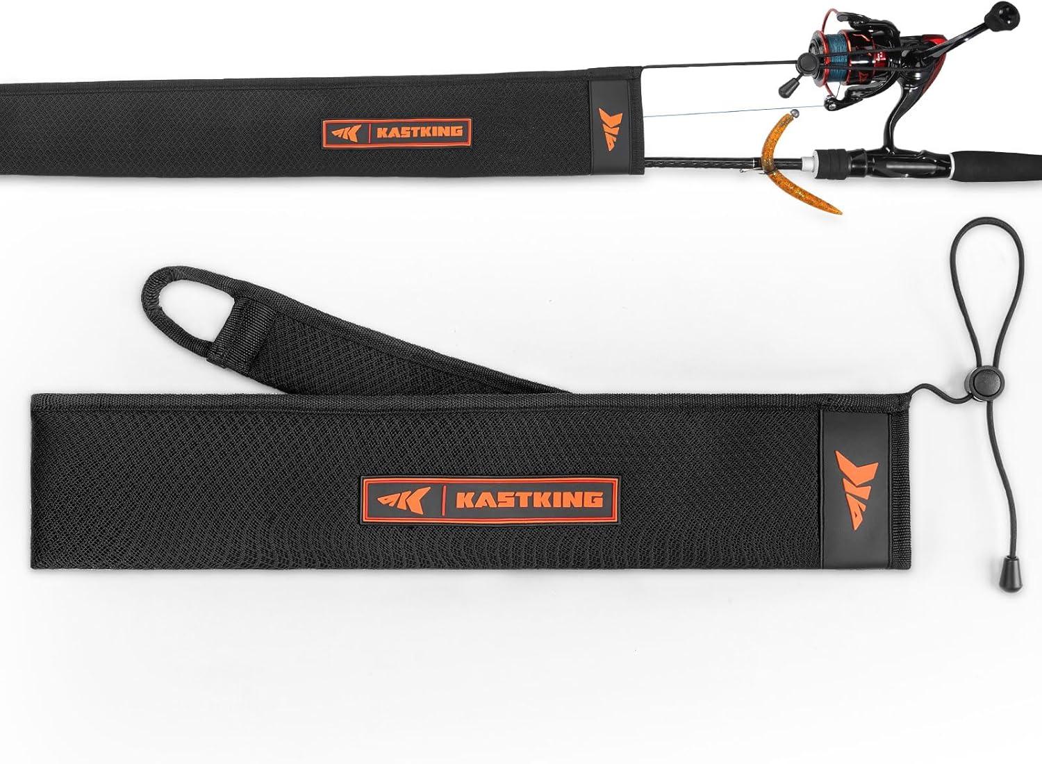 KastKing MeshGuard Rod Socks, Fishing Rod Sleeve, Neoprene Fishing Pole Sleeve, Fishing Rod Covers, Built-in Hanging Loop & Adjustable Lanyard, Fits Casting, Spinning, & Fly Rods(Black 1 Pcs)