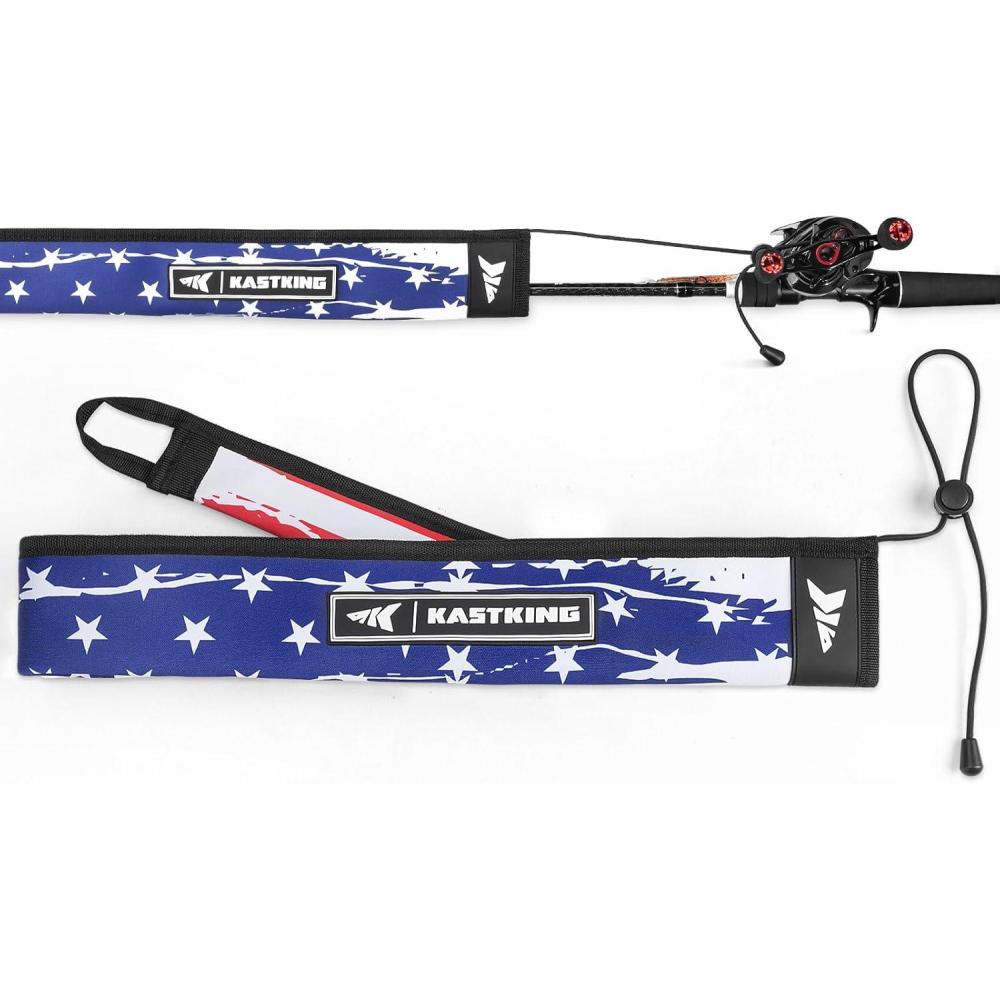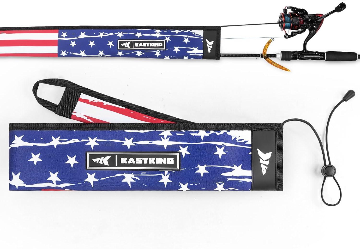 KastKing MeshGuard Rod Socks, Fishing Rod Sleeve, Neoprene Fishing Pole Sleeve, Fishing Rod Covers, Built-in Hanging Loop & Adjustable Lanyard, Fits Casting, Spinning, & Fly Rods(Flag 1 Pcs)