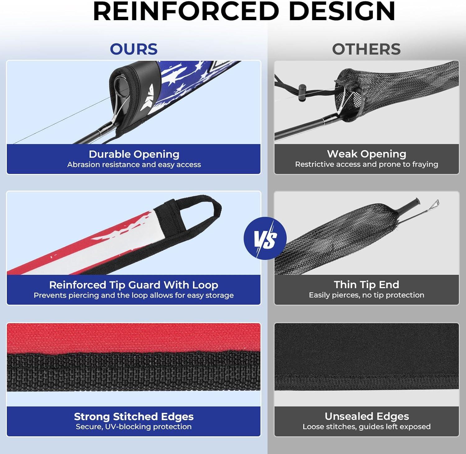 KastKing MeshGuard Rod Socks, Fishing Rod Sleeve, Neoprene Fishing Pole Sleeve, Fishing Rod Covers, Built-in Hanging Loop & Adjustable Lanyard, Fits Casting, Spinning, & Fly Rods(Flag 4 Pcs)