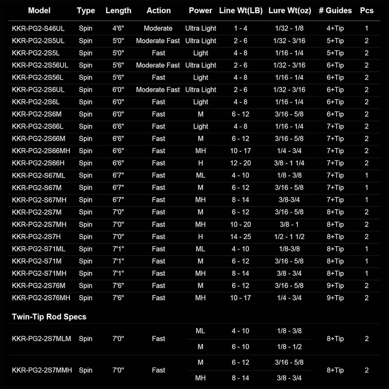 Amazing Quality Carbon Fiber Blank – All Perigee II two-piece fishing rods are constructed with Toray 24-ton carbon matrix KastFlex blank technology for power, strength, and accuracy. Available in 42 sizes from an ultra light spinning fishing rod to a heavy 7’ spinning rod and a baitcaster rod ranging from medium to heavy power. Use them for bass fishing rods, trout fishing, walleye fishing, or as a salmon rod, catfish rod, steelhead rod, or saltwater fishing rod.